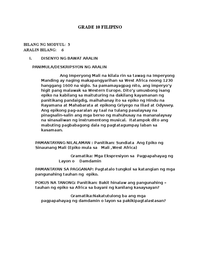 Hele ng ina sa kaniyang panganay. Aralin 36 A. Ang epiko ng sinaunang mali 496907 ang sundiata.