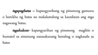 Mga pinuno batas at hukuman. CMaunawaan ang pinagkaiba ng Pamahalaan ng Datu at ng Pamahalaang Sultanato. Ano ang pagkakaiba ng tagalog pilipino at filipino bilang wika.